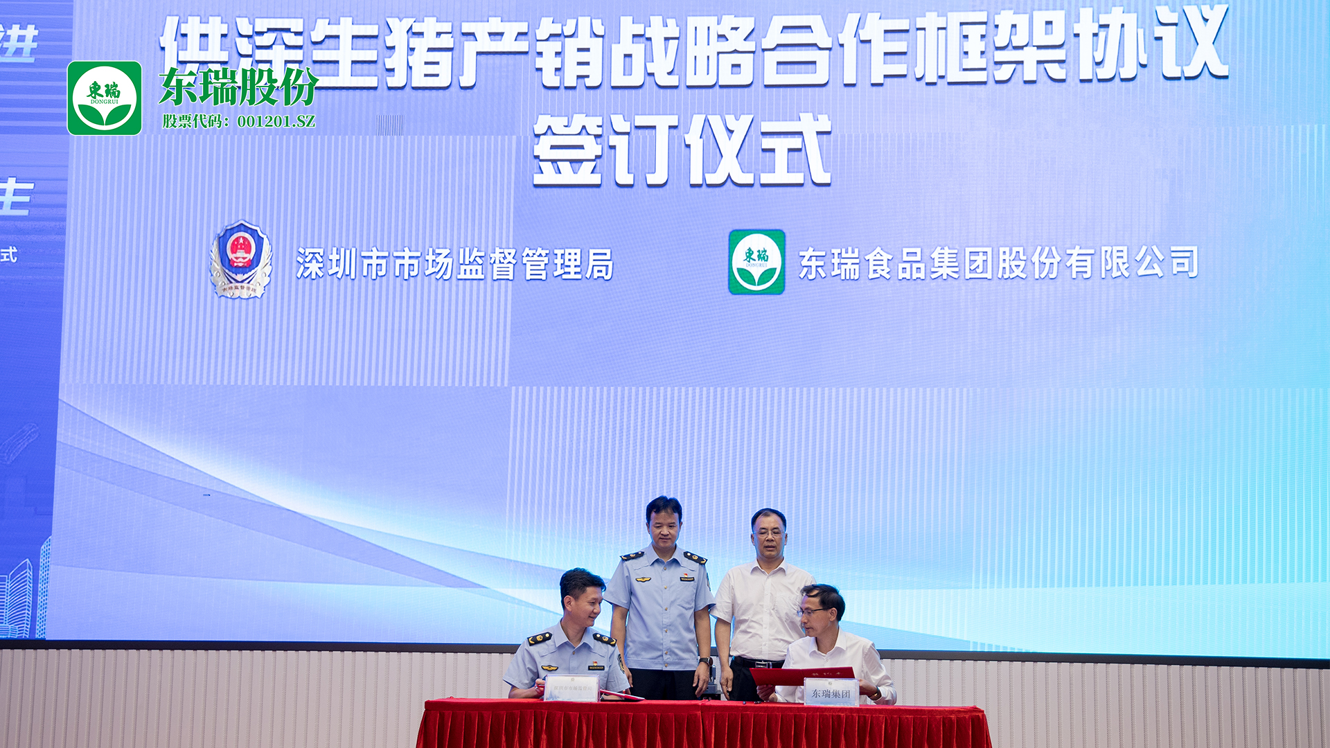 合作鑄輝煌,攜手開新篇。7月12日下午,東瑞股份與深圳市市場監督管理局供深生豬產銷戰略合作框架協議簽約儀式在深圳市工商物價大廈隆重舉行。
