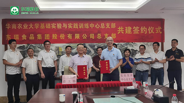 為積極推進黨建與業務的深度融合,創新開展“黨建+”系列活動,拓展校企合作,東瑞食品集團股份有限公司總支部與華南農業大學基礎實驗與實踐訓練中心總支部于2022年7月9日上午,在東瑞集團總部開展黨建、業務交流和校企黨組織“結對共建”簽約儀式。